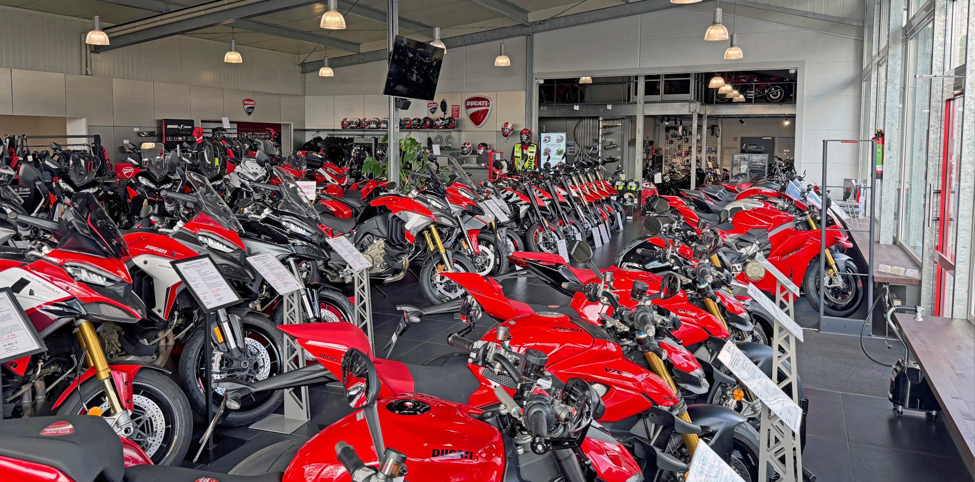 Bei uns dreht sich alles um Ducati – Leidenschaft, Performance und erstklassiger Service stehen bei uns an erster Stelle. Egal, ob Du ein neues Motorrad suchst, Dein Bike optimal ausstatten möchtest oder einen zuverlässigen Werkstattservice benötigst – wir sind Dein kompetenter Partner.